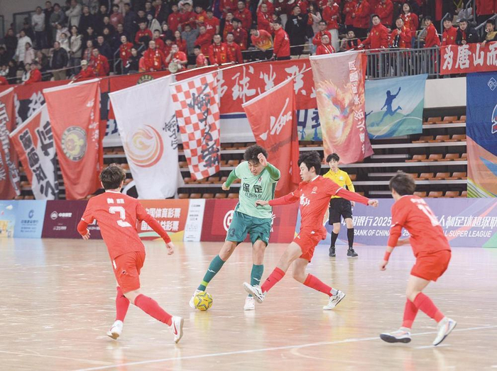 图为比赛现场。 杜雯拓 摄本报讯 (张曦、杨文进)1月24日晚,中国银行2025年河北省五人制足球超级联赛(简称“河北五超”)战罢第24轮,主场作战的唐山队负于“领头羊”保定队。